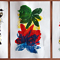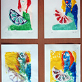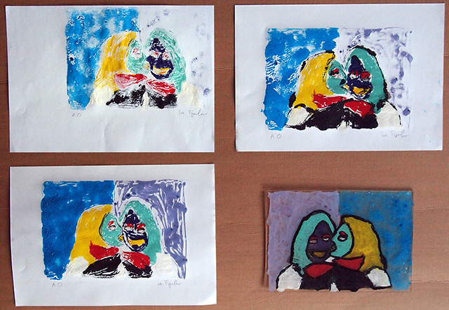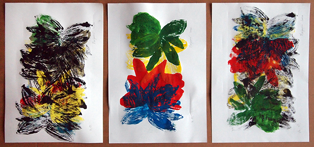 - Na matricu (plexiglas) položiti bijeli papir i rukama ili valjkom preći preko cijele površine