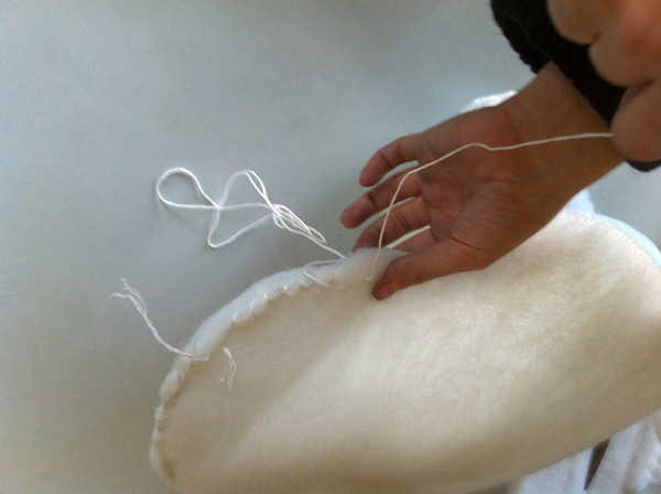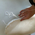 - Puni se punilom i zatvara nevidljivim šavom te veže deblji konac na kojem će visjeti