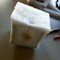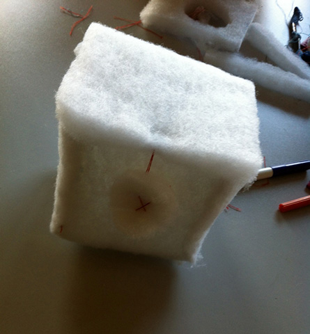 - Kutijice se šivanjem spajaju po rubovima i dodaje im se gumb, također od vatelina