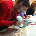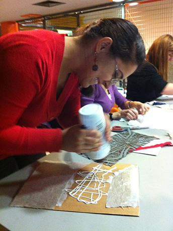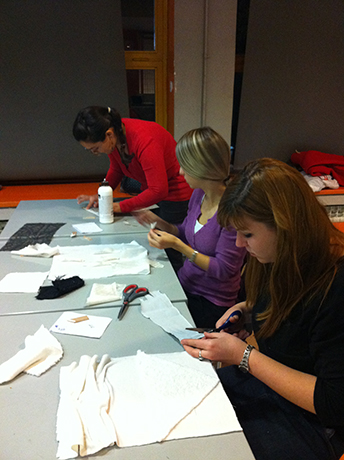 - Tkaninu rezati te ju lijepiti na podložak nanoseći drvofix u tankom sloju