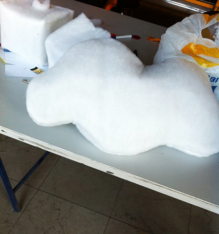 - Vatelin se presavija na pola i iscrtava se oblik oblaka na duplom sloju